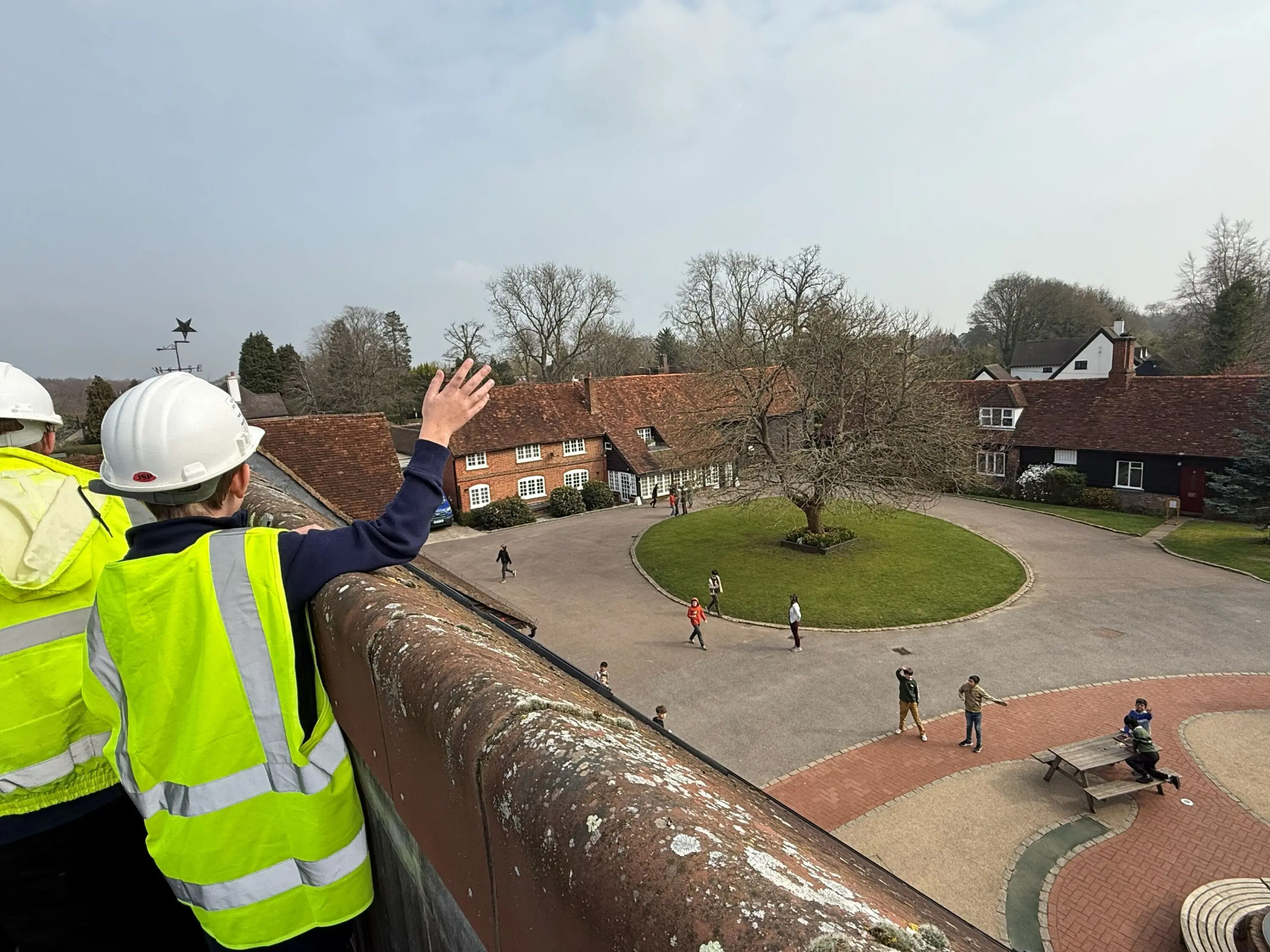 One of the most exciting parts of his day came when he rejoined the Estates Team for a special trip to the main Osborne Building roof. Carefully climbing the ladder – under the close supervision of staff – Oscar made it to the top of The Beacon, where he received an informative overview of the school grounds with a superb view, before waving down to his envious friends during their break time.