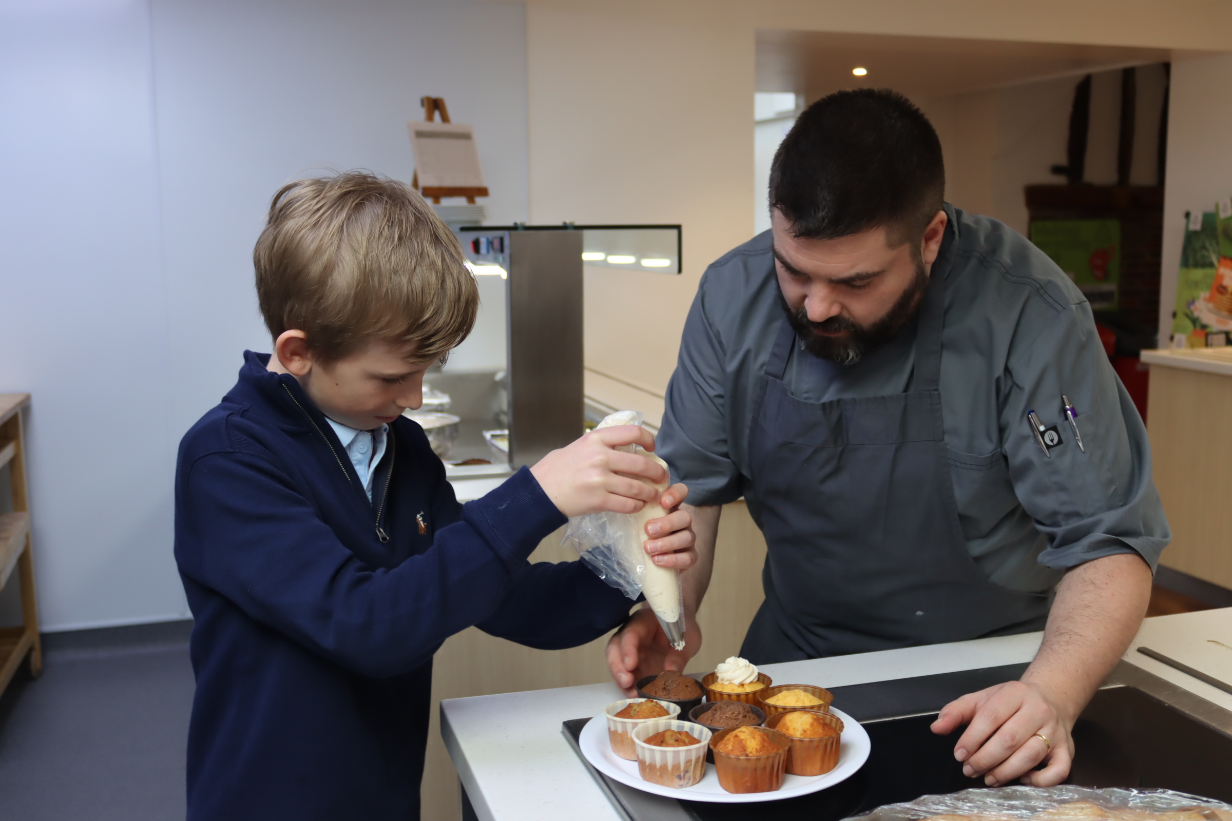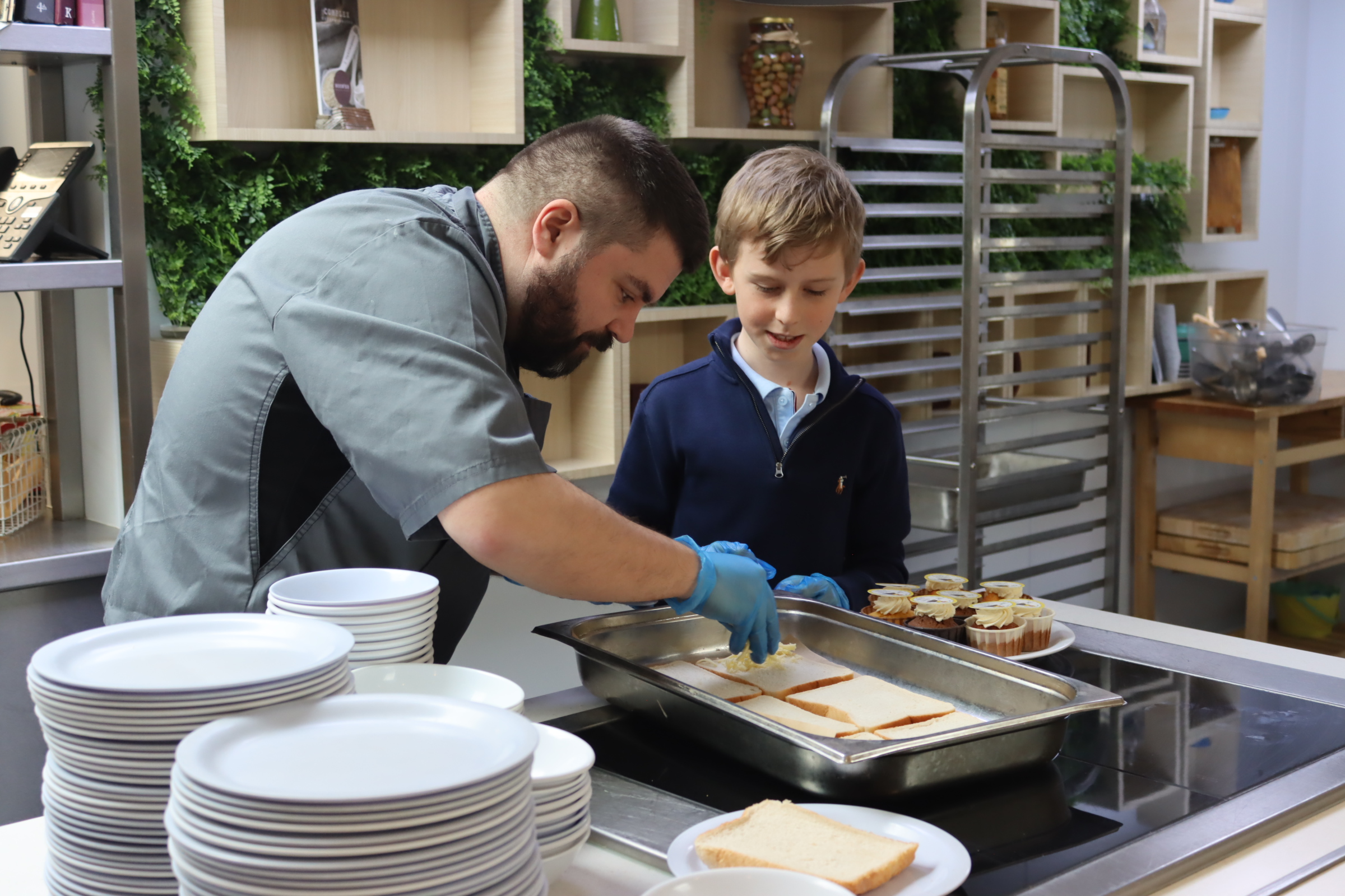 He began the day with a short meeting with our Head, Nick Baker, before heading to Assembly to hand out awards and commendations. Afterwards, he visited the school kitchen, where Chef Dino gave him a fascinating behind-the-scenes insight into how everything operates. From a detailed tour of the kitchen to icing his own cupcakes for pupils to enjoy during lunch – he even prepared cheese on toast as a snack for the Estates Team. Oscar threw himself into the experience and left the session with a great deal more culinary knowledge and operations of a professional kitchen.
