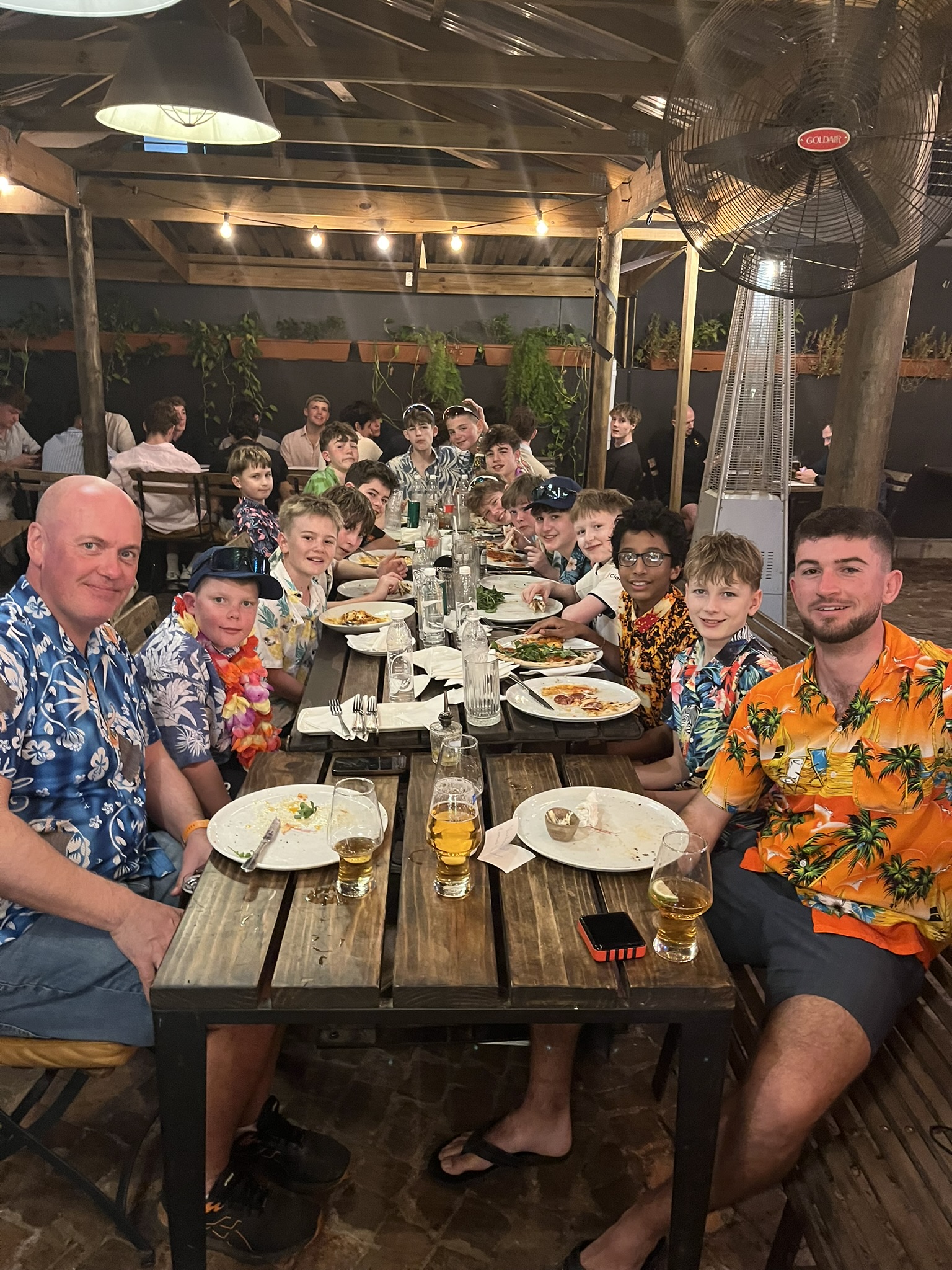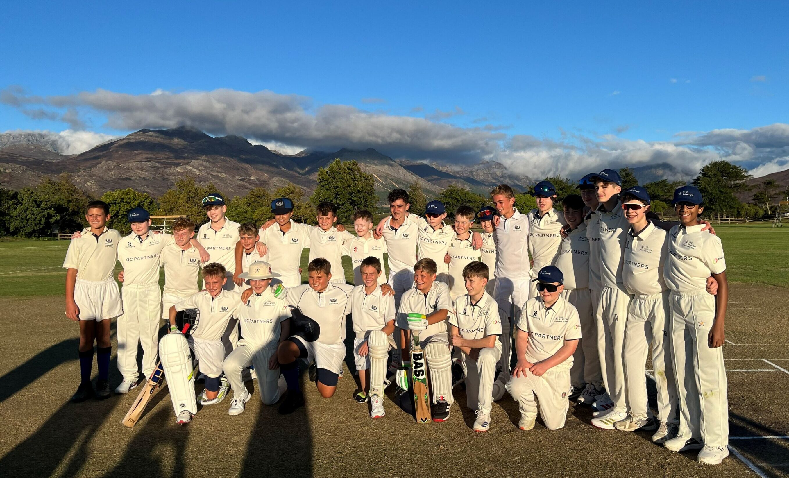 After a late dinner and a well-earned rest, the group awoke refreshed and ready for another busy day. They travelled to Somerset College for their second fixture against Leading Edge Development XI. Based in Somerset West, Leading Edge provides professional cricket coaching alongside life-skills and educational support for underprivileged boys and girls aged 11–12 in the Helderberg region, making the occasion especially meaningful for everyone involved. We were proud to donate cricket kit to support the charity, as well as presenting cricket pads to their Player of the Match, along with a Beacon hat and a rugby ball kindly provided by Gazapi’s Director. After a closely contested match, which went in Leading Edge Development’s favour, the group enjoyed a tasty pizza dinner, rounding off the evening in style with a fun Hawaiian shirt theme.